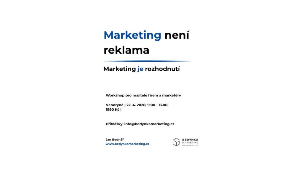Marketing totiž není reklama ani Facebook. Marketing je rozhodnutí – komu prodáváte, proč si má zákazník vybrat právě vás a jak se o vás dozví lidé, kteří o vás ještě nevědí.